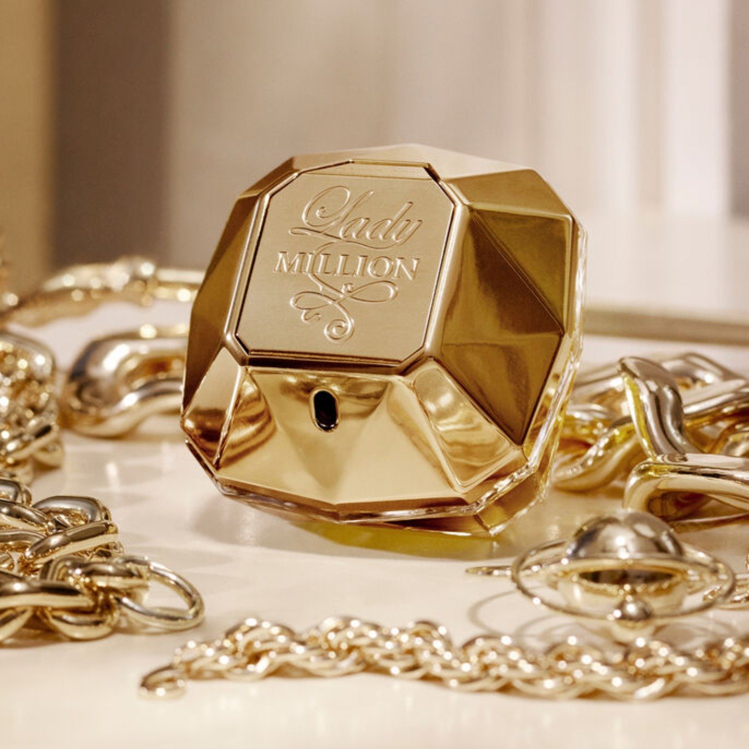 Creada por los talentosos perfumistas Anne Flipo, Béatrice Piquet, Dominique Ropion y Bruno Jovanovic, Lady Million combina exquisitamente acordes florales y frutales. Es más que un perfume: es tu firma de glamour y elegancia.